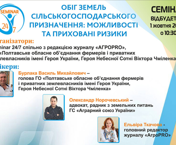 Програма: 1. Ринок права власності та ринок права оренди. Загальна характеристика кожного з них. 2. Придбання земельної ділянки приватної власності. 3. Придбання права оренди. 4. Передача державних земель до комунальної власності. 5. Доля земель, наданих у постійне користування для створення фермерського господарства. 6. Загроза шахрайських дій з землею та превентивні заходи з її недопущення. 7. Емфітевзис після 01липня 2021 року: нові умови. 8. Орендні відносини з приватними власниками землі. 9. Відповіді на запитання, задані учасниками семінару.