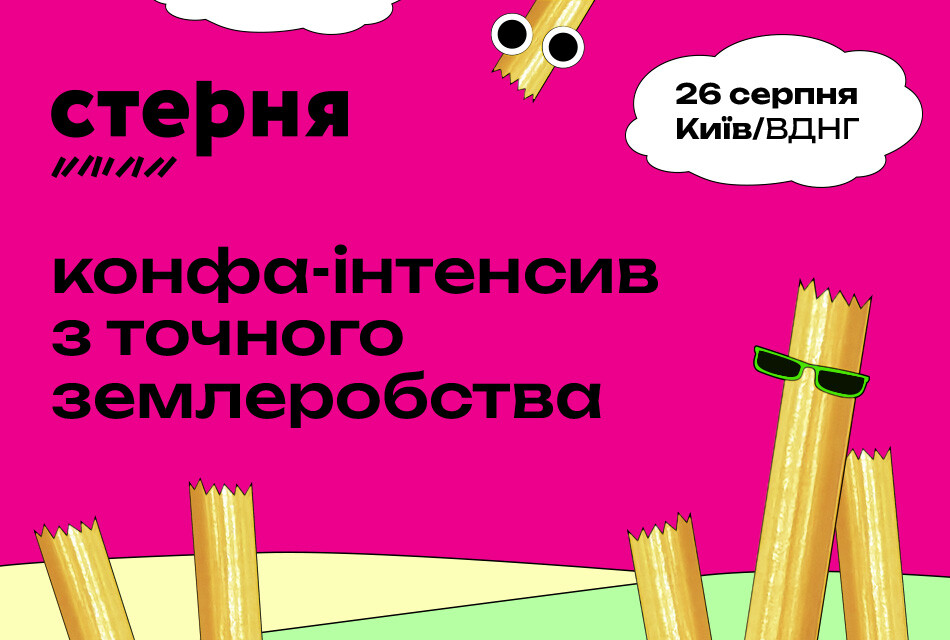 26 серпня у Києві на ВДНГ пройде конференція-інтенсив з точного землеробства «Стерня». 20 експертів-практиків з точного землеробства не лише поділяться досвідом, а й допоможуть зрозуміти, з чого починати впровадження ТЗ у вашому господарстві та як одразу перейти з рівня «початківець» до рівня «впевнений користувач».