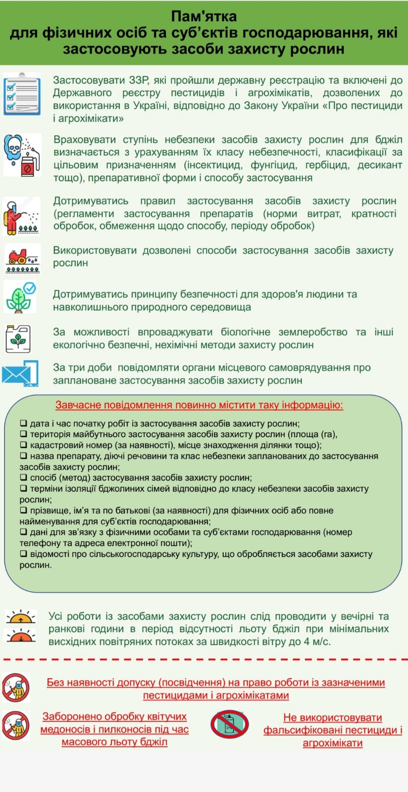 Пам'ятка для фізичних осіб та суб’єктів господарювання, які застосовують засоби захисту рослин.