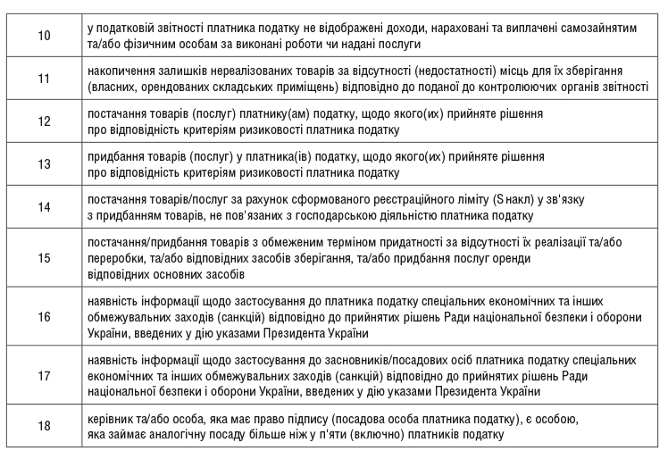 На виконання цієї норми ДПС України своїм наказом від 11.01.2023 р. № 17 затвердила Довідник кодів податкової інформації, яка є підставою для прийняття рішення про відповідність платника податку на додану вартість критеріям ризиковості платника податку. Таких кодів всього 18, наведемо їх в таблиці: